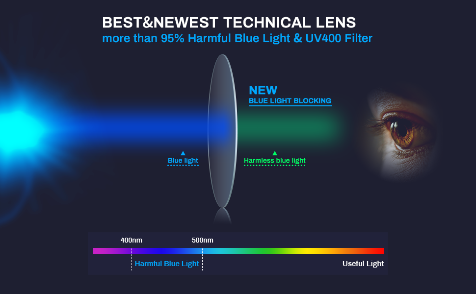 ❤ANTI BLUE LIGHT COATED LENSES –Designed with innovative lens that filters out the harmful blue light/ UV rays. The anti-blue light&anti-radiation coated lenses are best used for long hours of computer use to reduce symptoms of eyestrain and maintain natural sleep patterns. The original non-prescription lenses can be replaced with progressive lenses at any store.